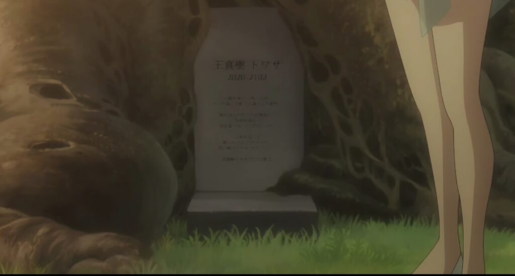 アキラとユウグレはトワサの墓前で愛を誓い、