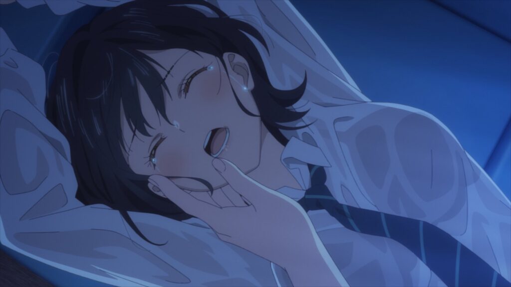 空気はかなり危うく、悠月は距離を詰めようとする。一方で、千歳はそれをそのまま受け入れるのではなく、あえて一線を踏み越えるような態度を取ります。